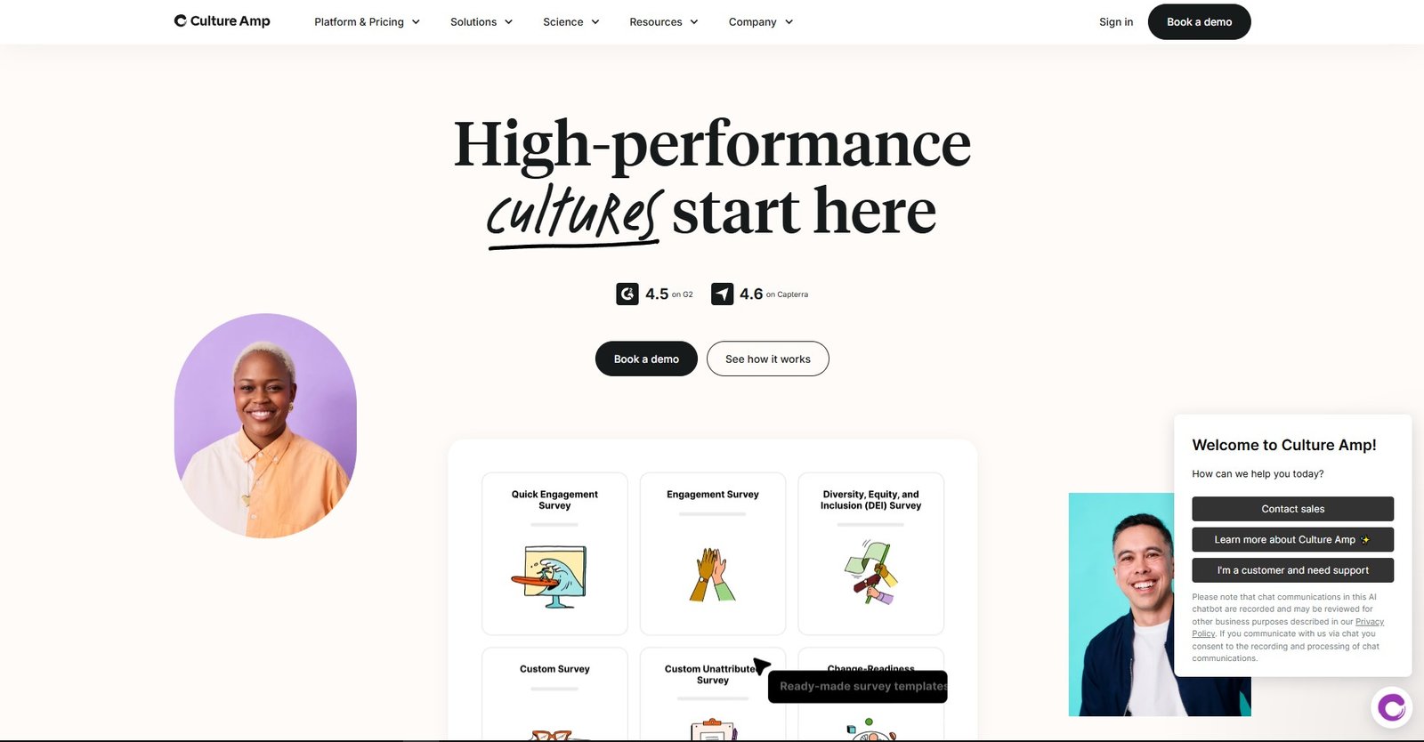 ما هو Culture Amp؟ هو منصة متخصصة في إدارة تجربة الموظفين، تساعد المؤسسات على تعزيز التفاعل والرضا الوظيفي من خلال جمع وتحليل آراء الموظفين، تقييم الأداء، وتطوير الثقافة التنظيمية باستخدام البيانات وا... See More