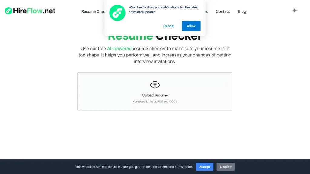 ما هو HireFlow؟ Resume & Cover Letter Optimizer، استخدم أداة فحص السيرة الذاتية المدعومة بالذكاء الاصطناعي ومولد خطابات التغطية على HireFlow.net لضمان أن تكون سيرتك الذاتية في أفضل شكل. تحلل هذه الأدا... See More