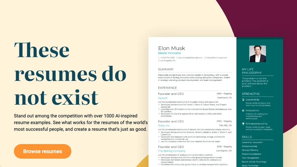 ما هو هذا السيرة الذاتية غير الموجودة؟ تميز بين المنافسين من خلال أكثر من 1000 نموذج سيرة ذاتية مستوحاة من الذكاء الاصطناعي. تعرف على ما يصلح للسير الذاتية للأشخاص الأكثر نجاحًا في العالم، وأنشئ سيرة... See More