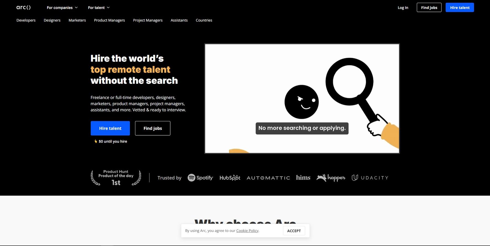 ما هو arc؟ يساعدك arc على تخطي التواصل والإعلانات الوظيفية وفحص السيرة الذاتية لتوظيف أفضل المطورين في العالم بسرعة البرق. See More