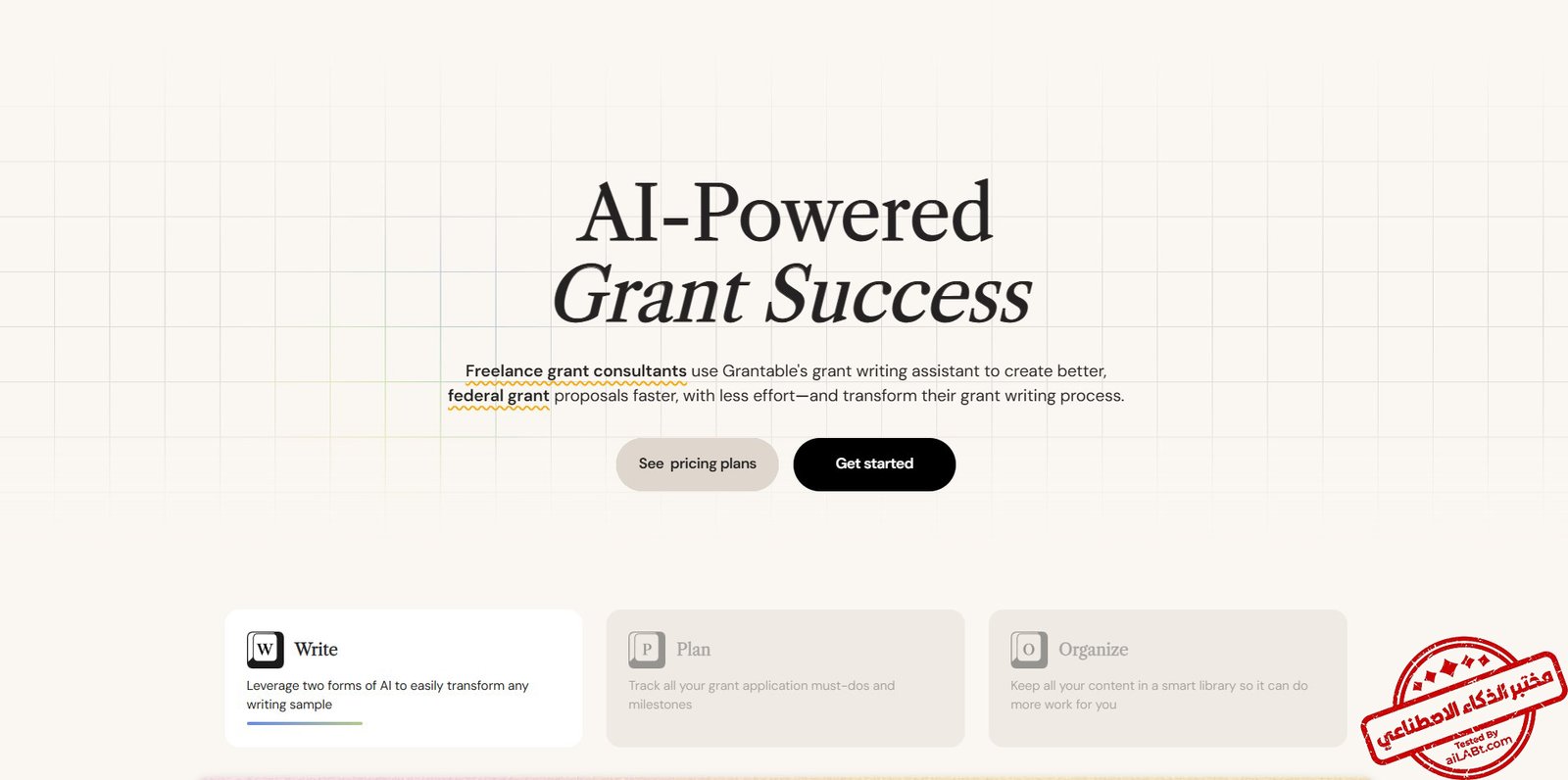 ما هو Grantable؟ هو منصة مدعومة بالذكاء الاصطناعي لمساعدة الأفراد والمنظمات على كتابة طلبات المنح بكفاءة عالية، عبر مكتبة ذكية للمحتوى، مساعد ذكاء اصطناعي قوي، وأدوات تعاون تدعم فرق العمل وتُسهل عملية... See More